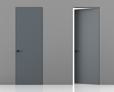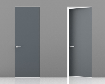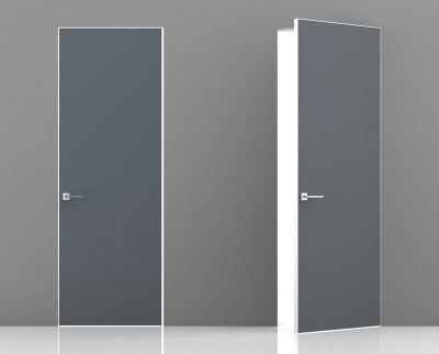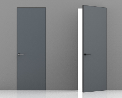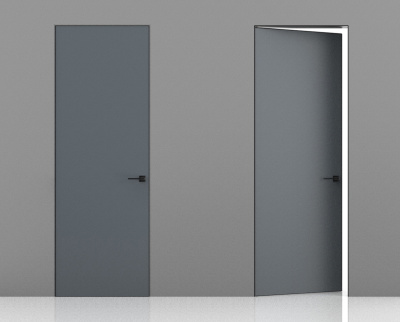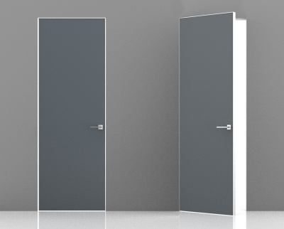 Межкомнатная дверь Эмаль Invisible RAL 7001 (57) Alum. Revers кромка c 3-х сторон (от себя/на себя), лев